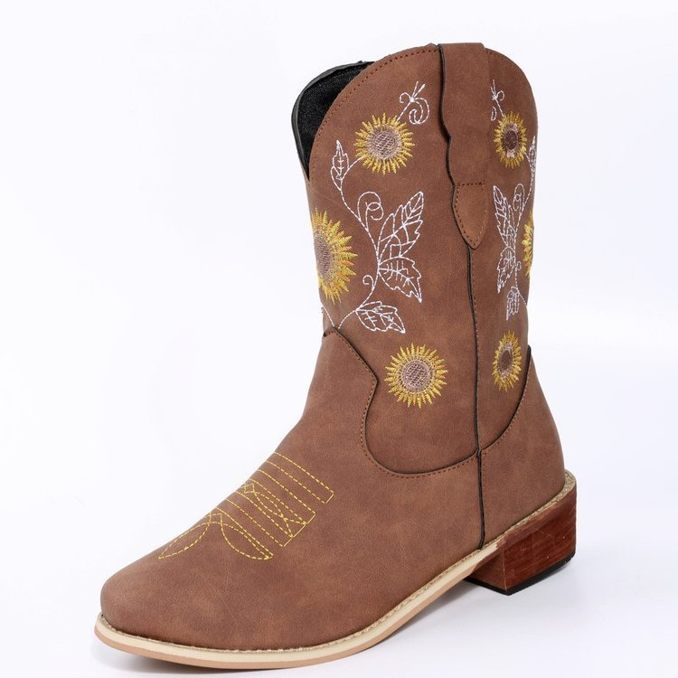 Women's Winter Western Cowboy Boots Embroidered Mid-Calf Pointed Toe Cowgirl Boot Chunky Heel Pointed Toe Fashion Retro Classic Boot